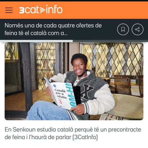 El Senkoun viu en una casa d’acollida de la Fundació Barcelona Actua i des de fa poc aprèn català en classes grupals i també amb una parella lingüística. Parla malinké, francès i castellà, però ara té una nova motivació de pes per aprendre català: un precontracte de feina.