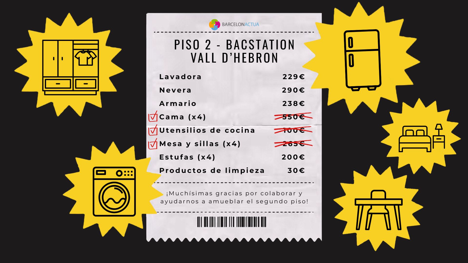 El primer piso de la BACstation Vall d'Hebron ya es una realidad. Hemos recaudado 1.937€ para amueblar el primer piso. ¡Ahora vamos a por el segundo!